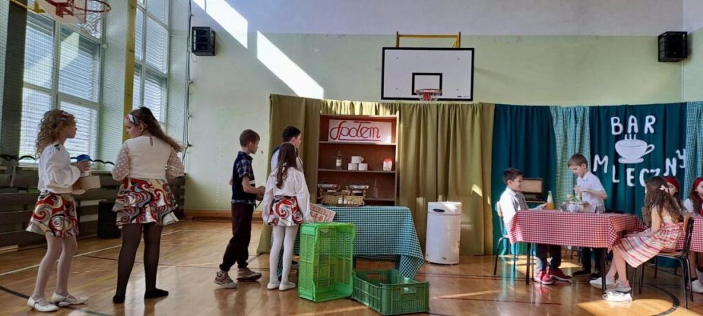 🌷 21 marca nasza szkoła powitała wiosnę w wyjątkowym stylu – przenosząc się w czasie do lat 70. i 80.! Uczniowie i nauczyciele zorganizowali niezwykłą podróż do epoki PRL-u, pełną muzyki, barwnych strojów i niezapomnianych emocji. 💃🕺