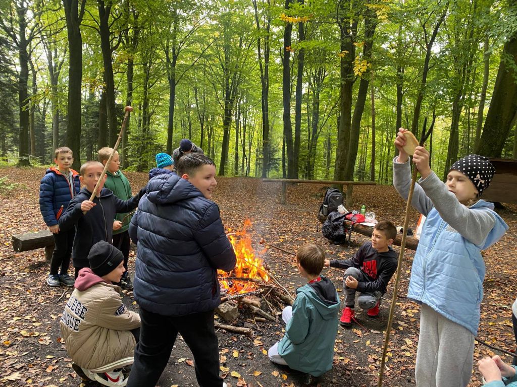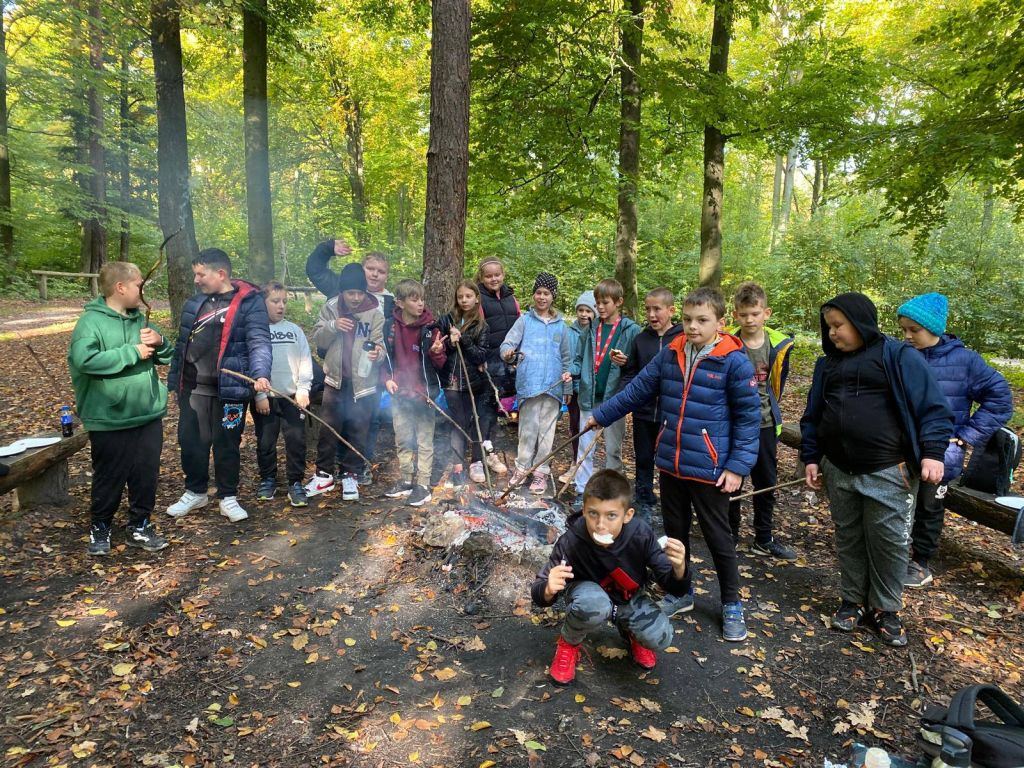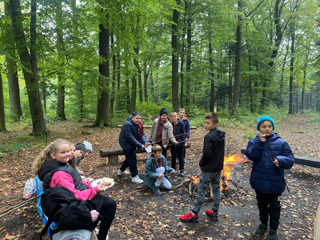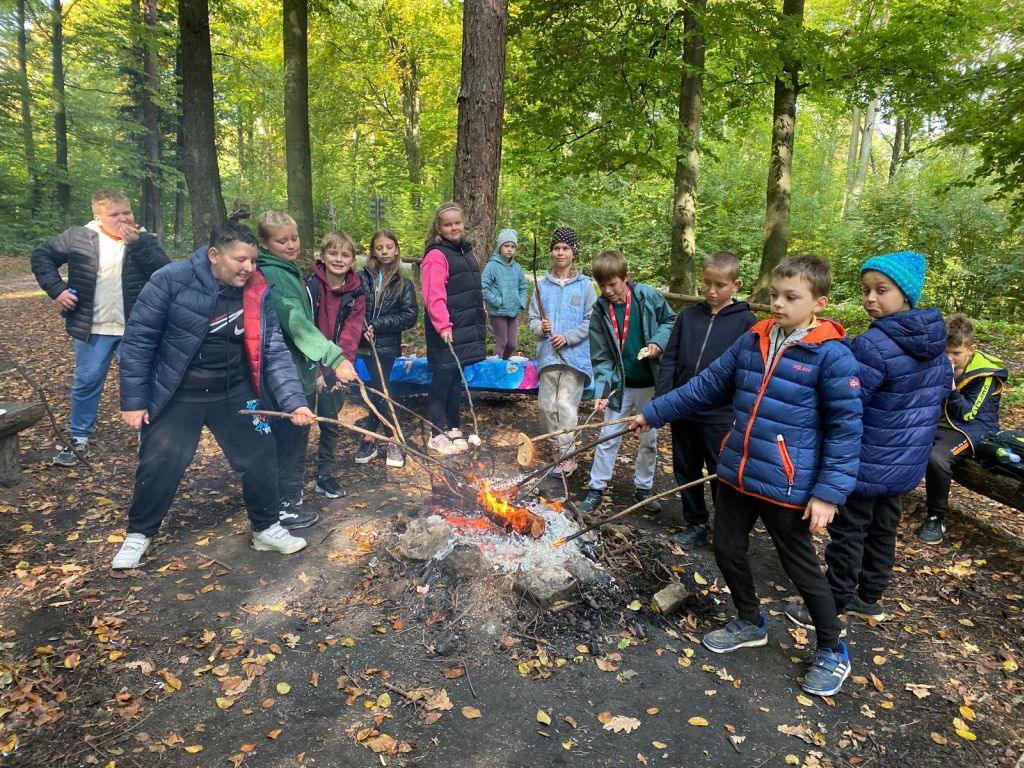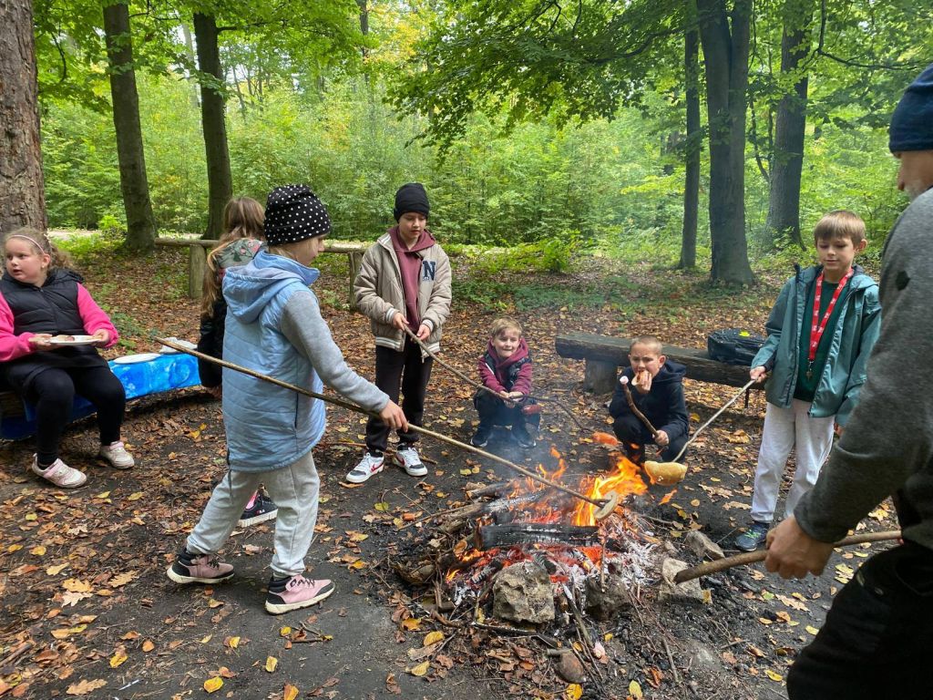 Na zakończenie wędrówki na uczestników czekało ognisko, przy którym piekli kiełbaski i dzielili się wrażeniami z wycieczki. Był to dzień pełen uśmiechu, radości i jesiennych wrażeń, który na długo pozostanie w pamięci uczniów.