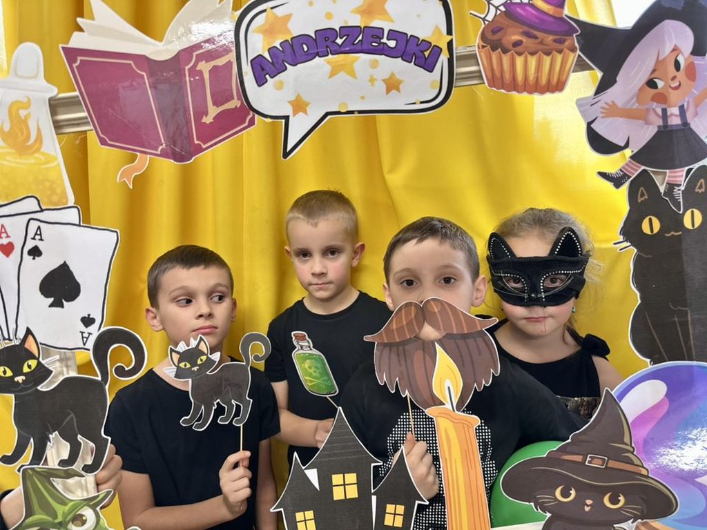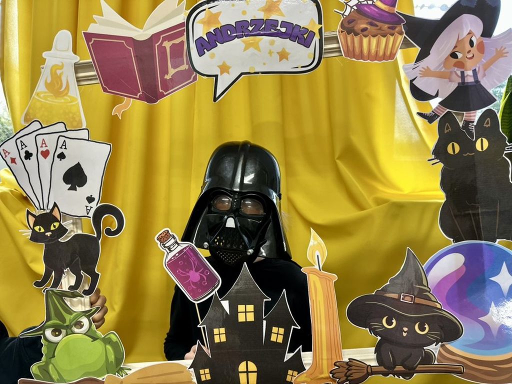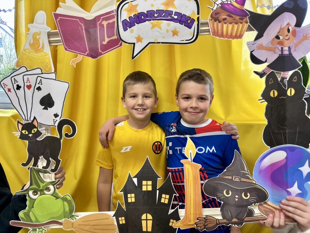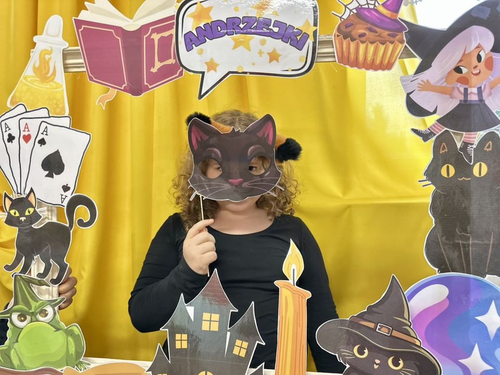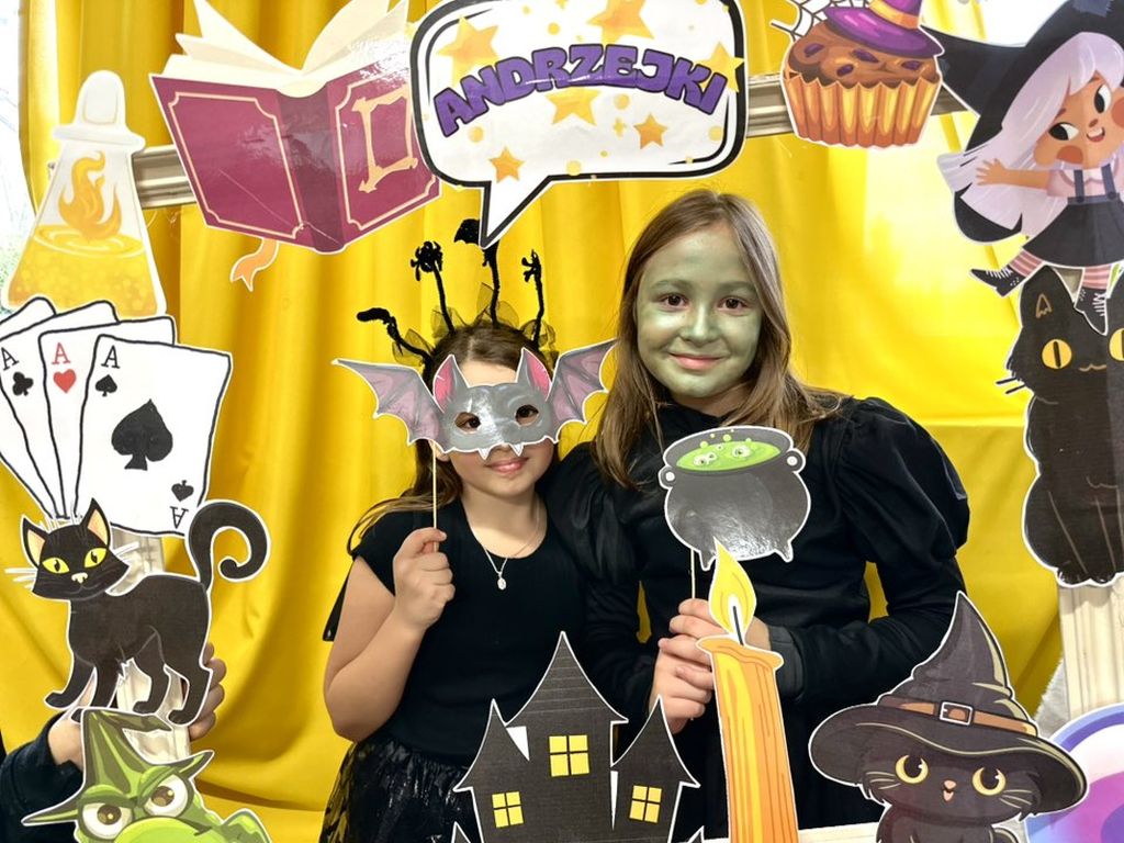 Prawdziwym hitem imprezy okazała się andrzejkowa fotoramka. Uczniowie chętnie pozowali do pamiątkowych zdjęć, wykorzystując zabawne rekwizyty – maski, wąsy, kapelusze czy wizerunki czarnych kotów i czarownic.
