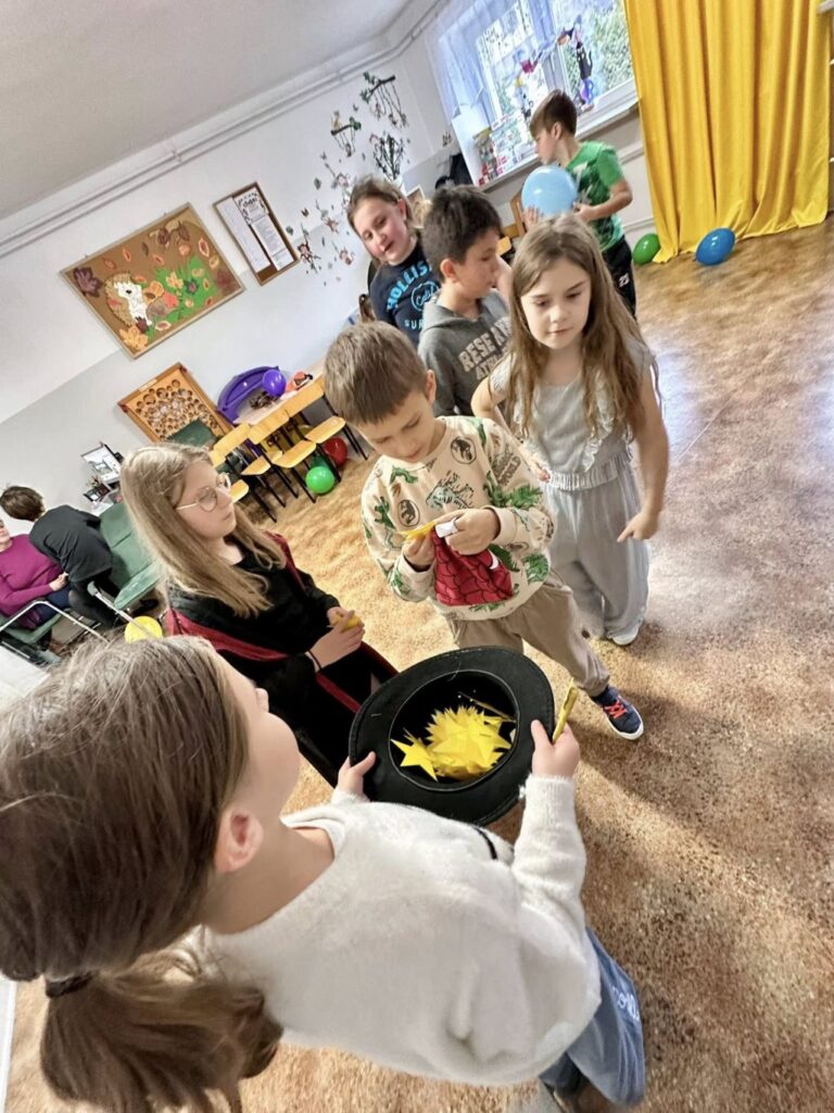 Oprócz magii, w świetlicy królował ruch i muzyka. Uczniowie brali udział w licznych zabawach integracyjnych, które dostarczyły mnóstwo emocji: