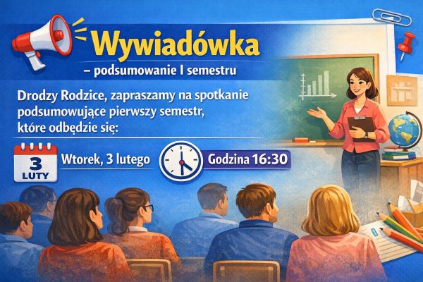Szanowni Państwo, Drodzy Rodzice! Pierwsza połowa roku szkolnego za nami. To doskonały czas na podsumowanie dotychczasowej pracy uczniów, docenienie ich sukcesów oraz omówienie wyzwań, które czekają nas w nadchodzących miesiącach. Serdecznie zapraszamy na zebranie z rodzicami (wywiadówkę) podsumowujące pierwszy semestr nauki. Spotkanie będzie okazją do zapoznania się z wynikami w nauce i zachowaniu Państwa dzieci, a także…