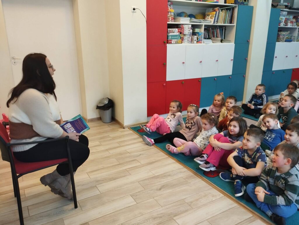 Pierwsze spotkanie z cyklu upłynęło w niezwykle ciepłej i radosnej atmosferze. Naszym gościem specjalnym była mama Julii, która zabrała przedszkolaki w podróż do świata klasycznych baśni, czytając historię o sprytnym „Kocie w butach”. Dzieci z ogromnym zaciekawieniem i w pełnym skupieniu wsłuchiwały się w losy bajkowego bohatera.
