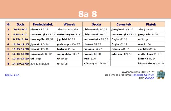 sie 28 2025 Wyłączono Nowy plan lekcji przez adminMK Od 1 września obowiązuje nowy plan lekcji. Prosimy o zapoznanie się z harmonogramem przed rozpoczęciem zajęć. Nawigacja wpisu Poprzedni wpisPoprzedni Rozpoczęcie roku szkolnego 2025/2026Następny wpisNastępne Nowoczesna pracownia AI dla naszej szkoły dzięki wsparciu KPO!