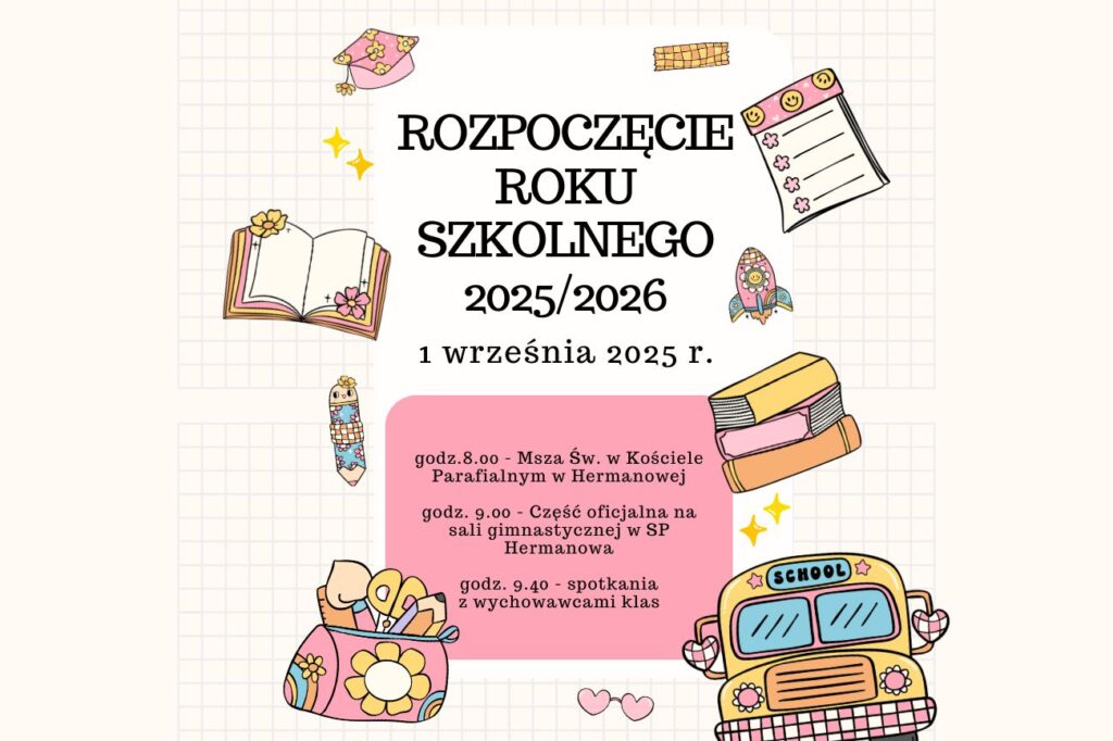 Serdecznie zapraszamy uczniów, rodziców oraz nauczycieli na uroczyste rozpoczęcie roku szkolnego 2025/2026, które odbędzie się 1 września 2025 r.