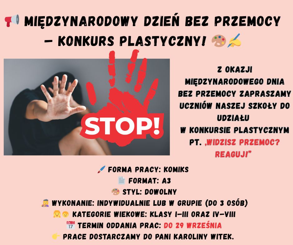 📢 Międzynarodowy Dzień Bez Przemocy – konkurs plastyczny! 🎨