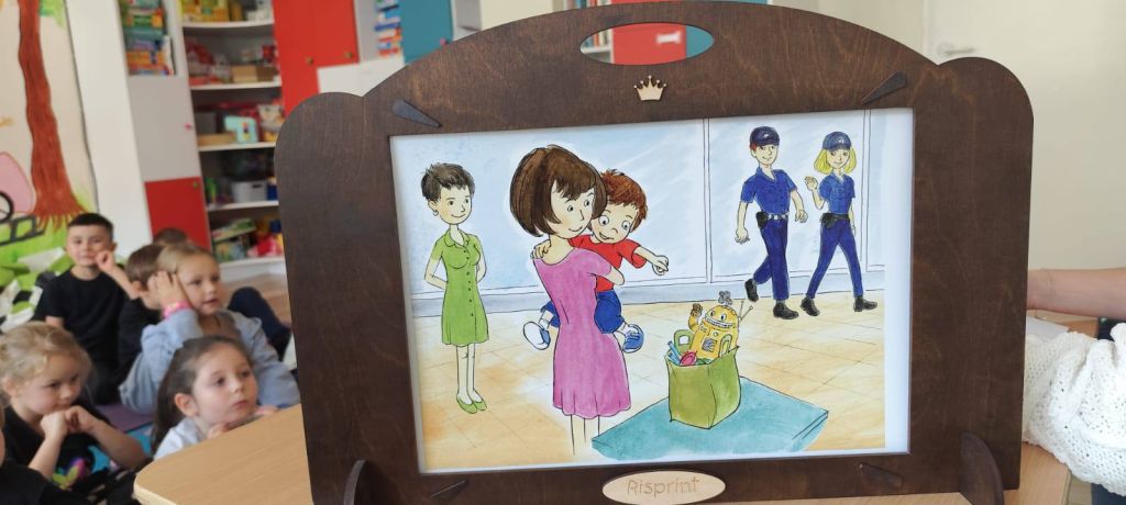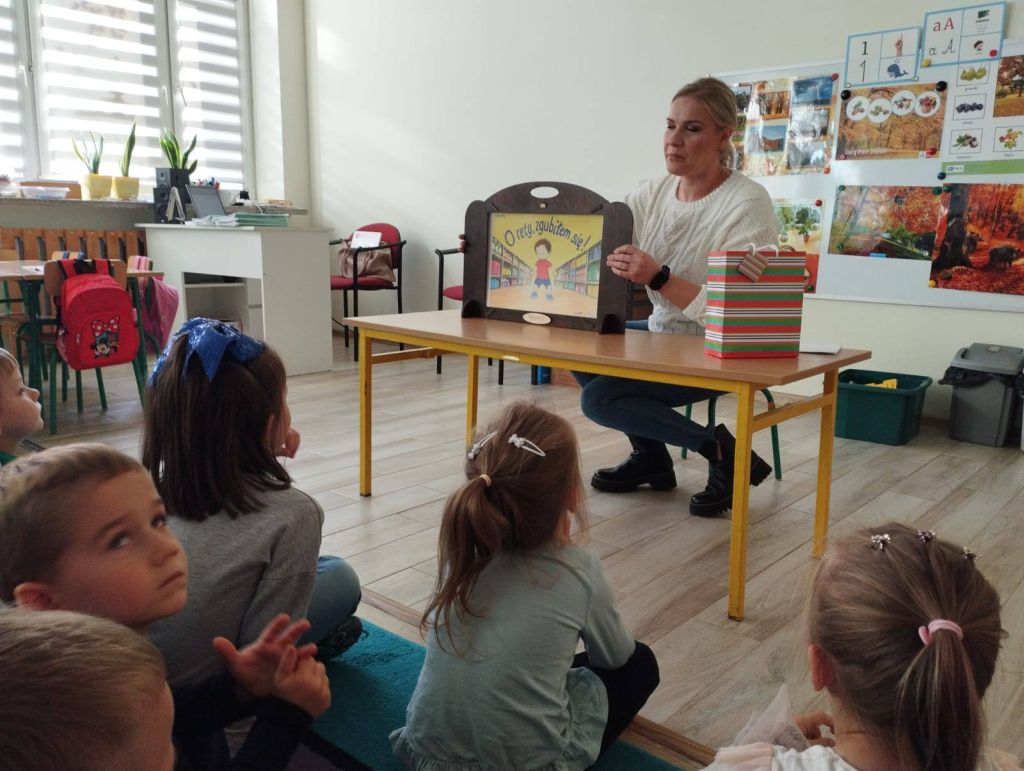 Podczas zajęć przedszkolaki z ogromnym zainteresowaniem wysłuchały historii chłopca, który zgubił się w sklepie i szukał swojej mamy. Opowieść została zaprezentowana w formie teatrzyku kamishibai – tradycyjnej japońskiej sztuki opowiadania z wykorzystaniem ilustracji. Dzięki temu dzieci mogły nie tylko śledzić przebieg wydarzeń, ale również aktywnie uczestniczyć w opowieści, przeżywając emocje bohatera.