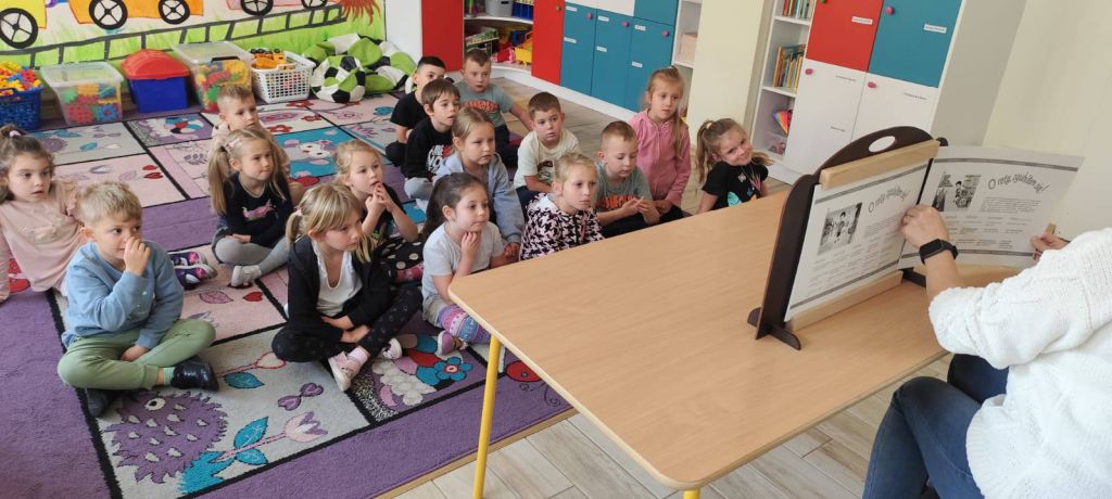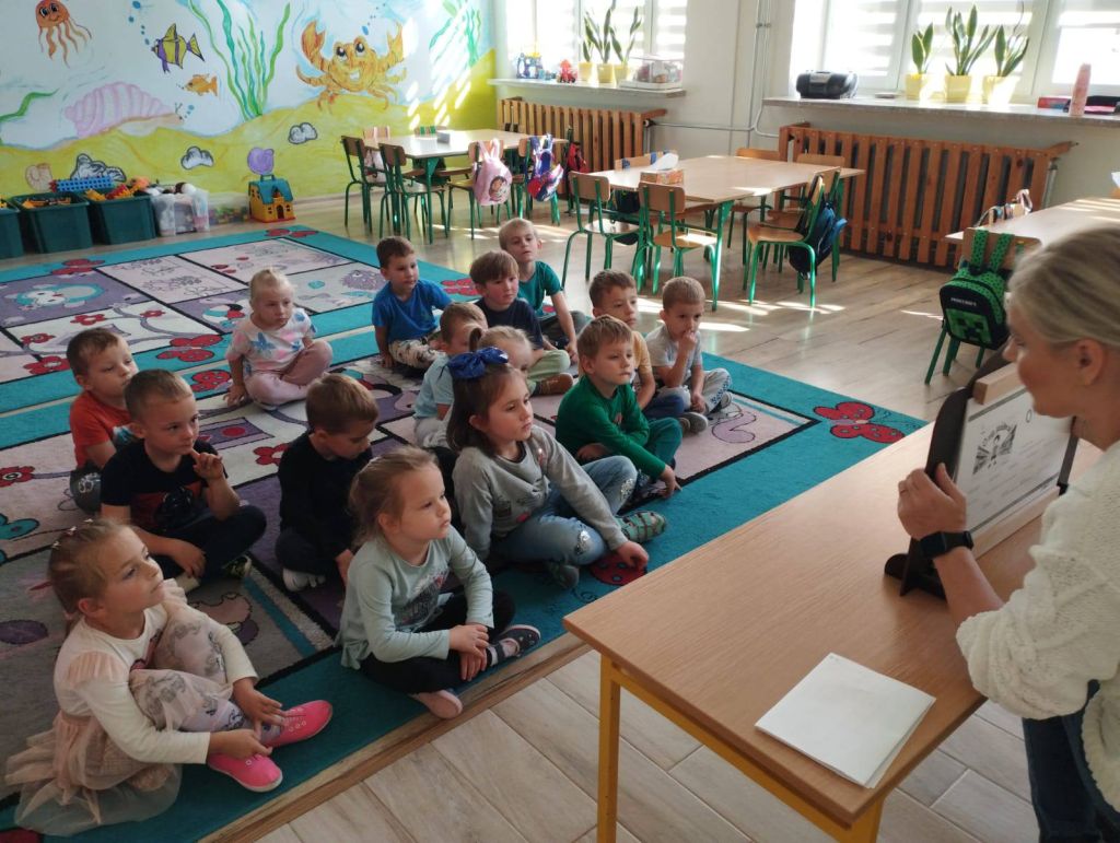 W minionym tygodniu dzieci z oddziałów przedszkolnych miały okazję uczestniczyć w wyjątkowym spotkaniu z panią bibliotekarką z Miejskiej i Gminnej Biblioteki Publicznej w Tyczynie, filia w Hermanowej.