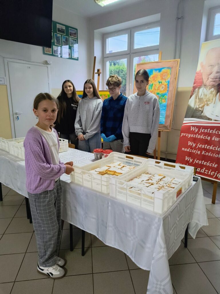 16 października 2025 roku w Szkole Podstawowej im. Św. Królowej Jadwigi w Hermanowej odbył się coroczny kiermasz z okazji Dnia Papieskiego. Od wczesnych godzin porannych szkolny korytarz wypełnił się zapachem świeżych kremówek, które z uśmiechem sprzedawali uczniowie zaangażowani w działalność Szkolnego Koła Caritas i Szkolnego Wolontariatu.