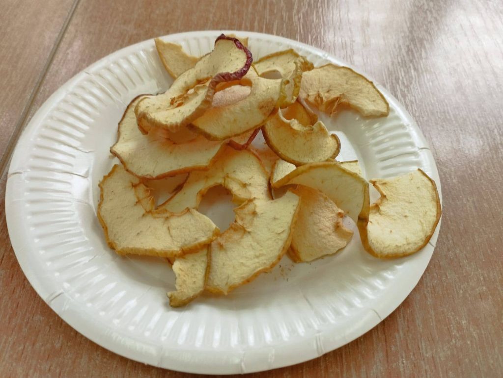 Na zakończenie tego wyjątkowego dnia odbyła się degustacja. Przedszkolaki ze smakiem próbowały świeżo wyciskanego soku jabłkowego oraz zdrowych i chrupiących chipsów jabłkowych. Wszystkie te pyszności bardzo zasmakowały naszym podopiecznym i były doskonałym podsumowaniem dnia pełnego wrażeń.