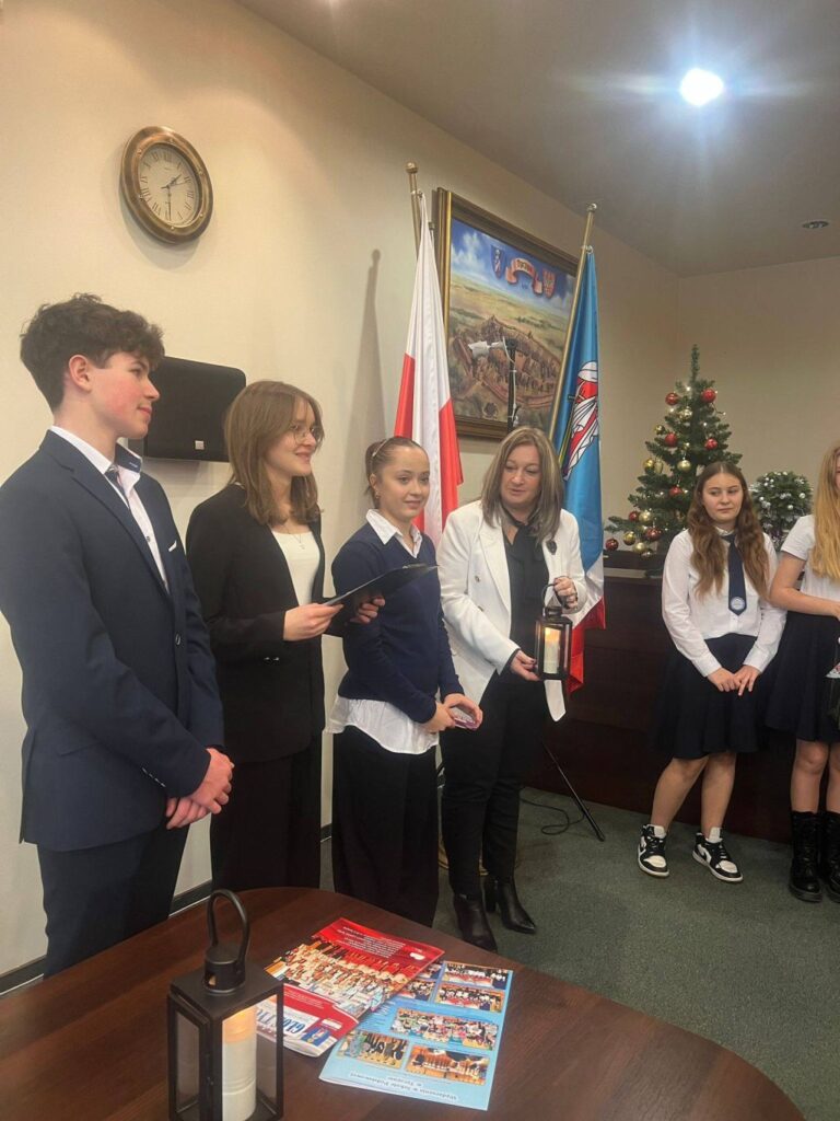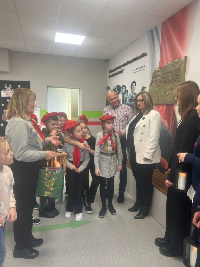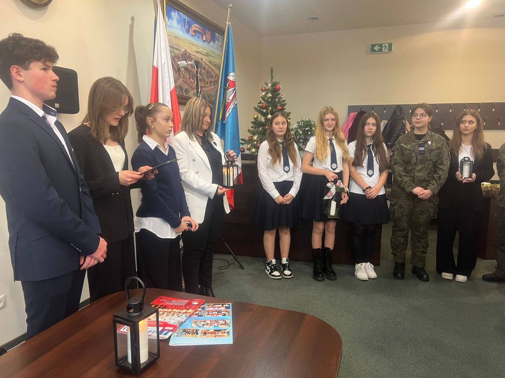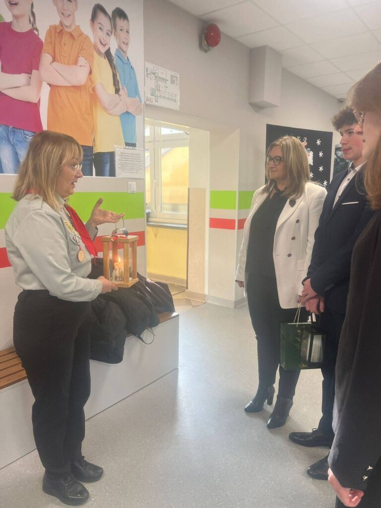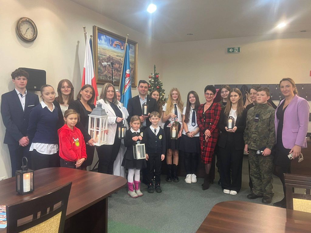 Nie zatrzymaliśmy tego światła tylko dla siebie. Zgodnie z piękną tradycją dzielenia się dobrem, nasza delegacja przekazała płomień dalej – na ręce Pana Burmistrza Tyczyna oraz dyrektorów szkół z terenu naszej gminy.