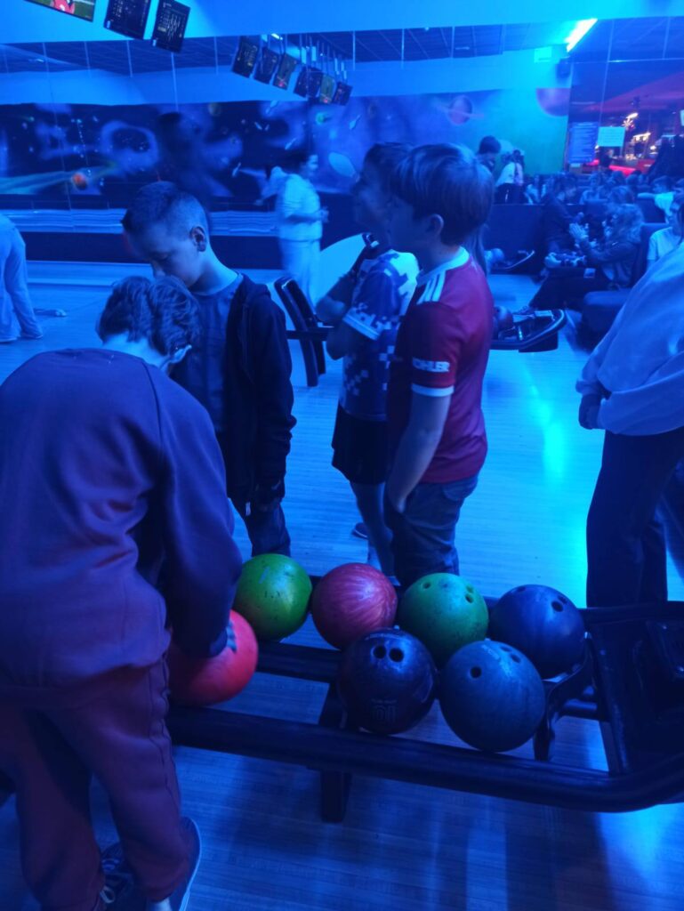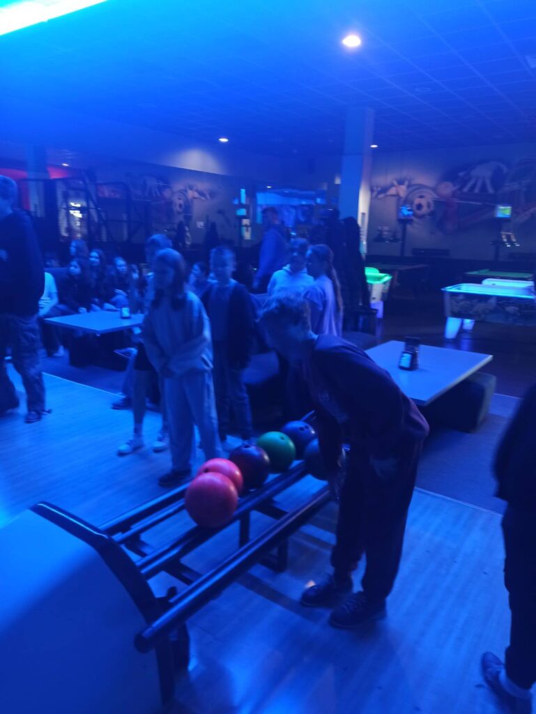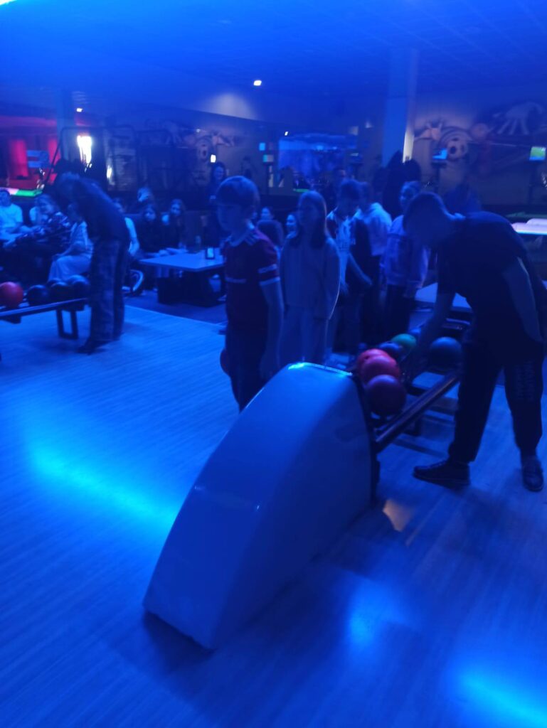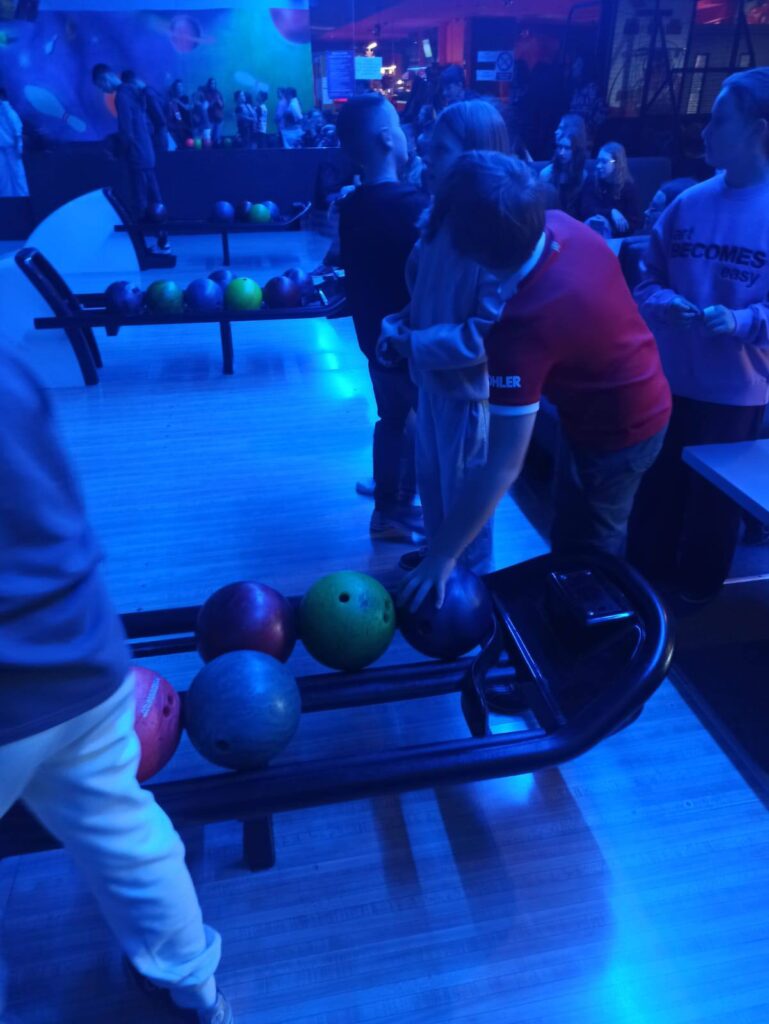 Po przybyciu na miejsce uczniowie zostali podzieleni na kilkuosobowe zespoły i rozpoczęli grę w kręgle. Zabawie towarzyszyła miła atmosfera oraz zdrowa sportowa rywalizacja. Uczniowie chętnie kibicowali sobie nawzajem, cieszyli się z udanych rzutów i wspólnie przeżywali sportowe emocje. Dla wielu z nich była to także okazja do doskonalenia swoich umiejętności oraz spróbowania czegoś nowego.