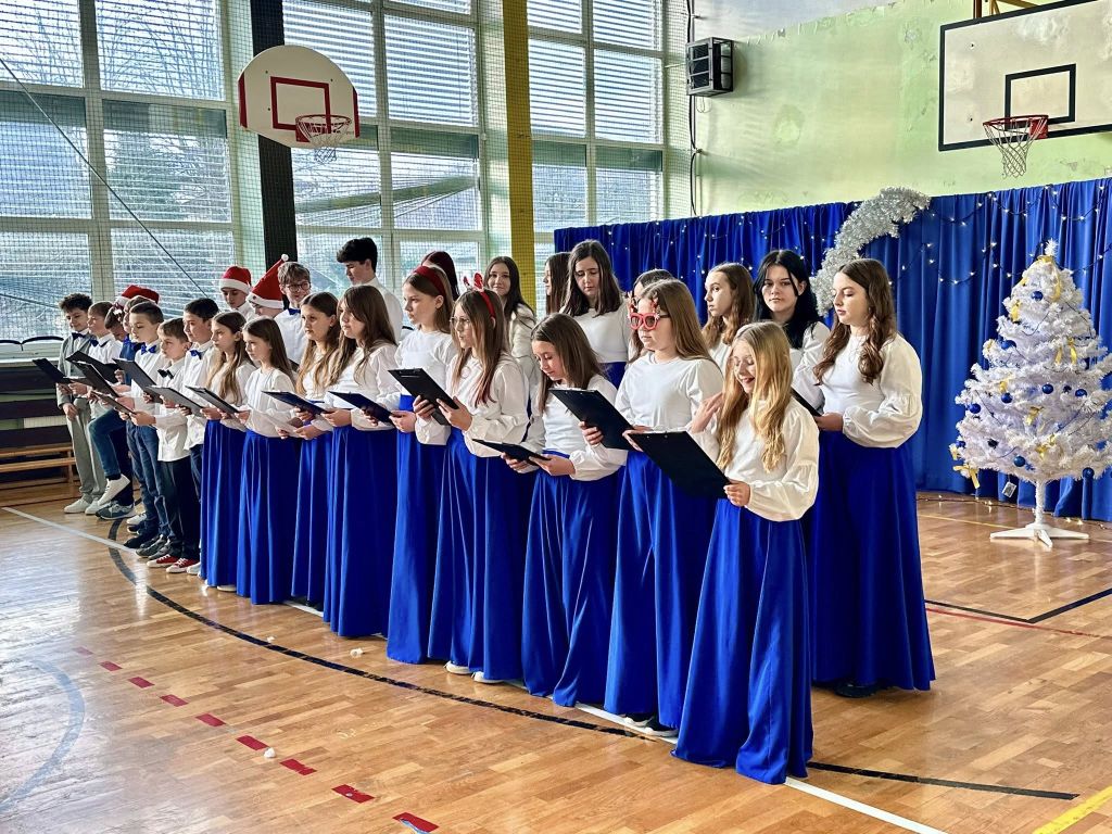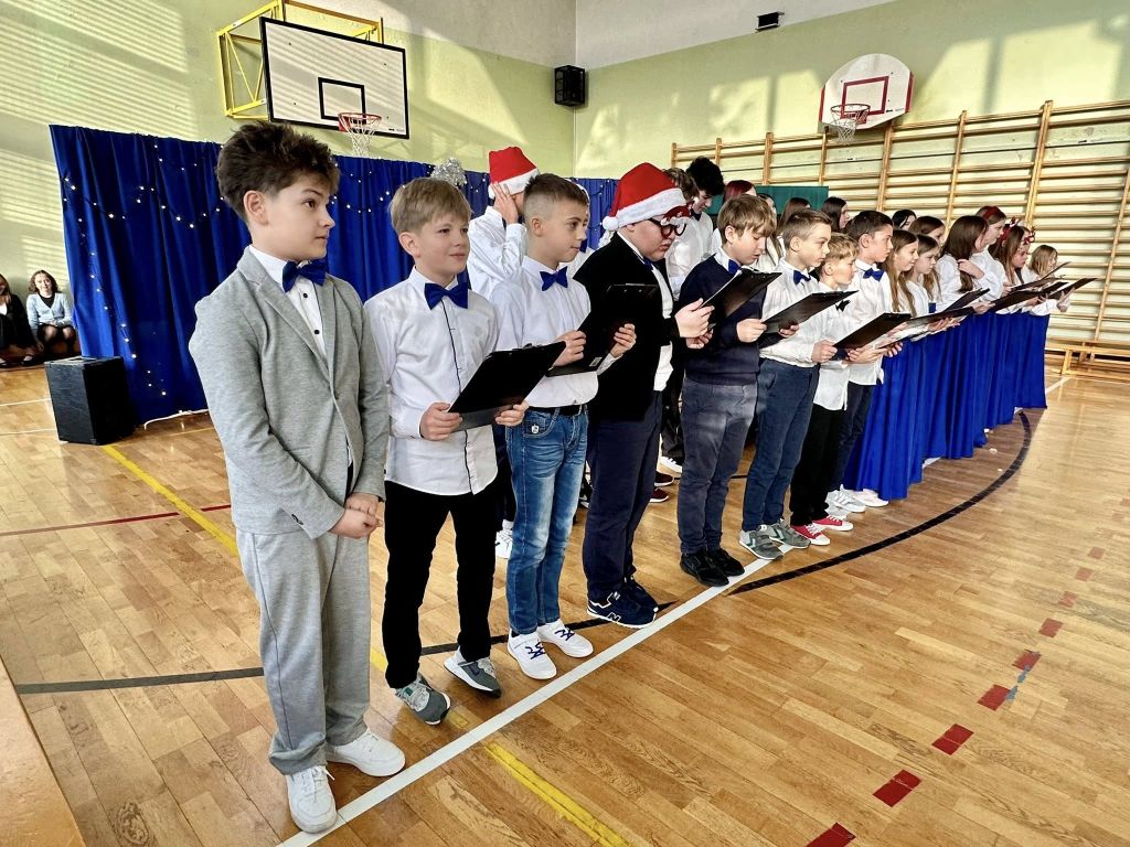W miniony piątek nasza sala gimnastyczna przeszła niezwykłą metamorfozę. Z miejsca sportowych zmagań stała się nastrojową przystanią, w której cała społeczność szkolna spotkała się, by wspólnie świętować nadchodzące Boże Narodzenie.