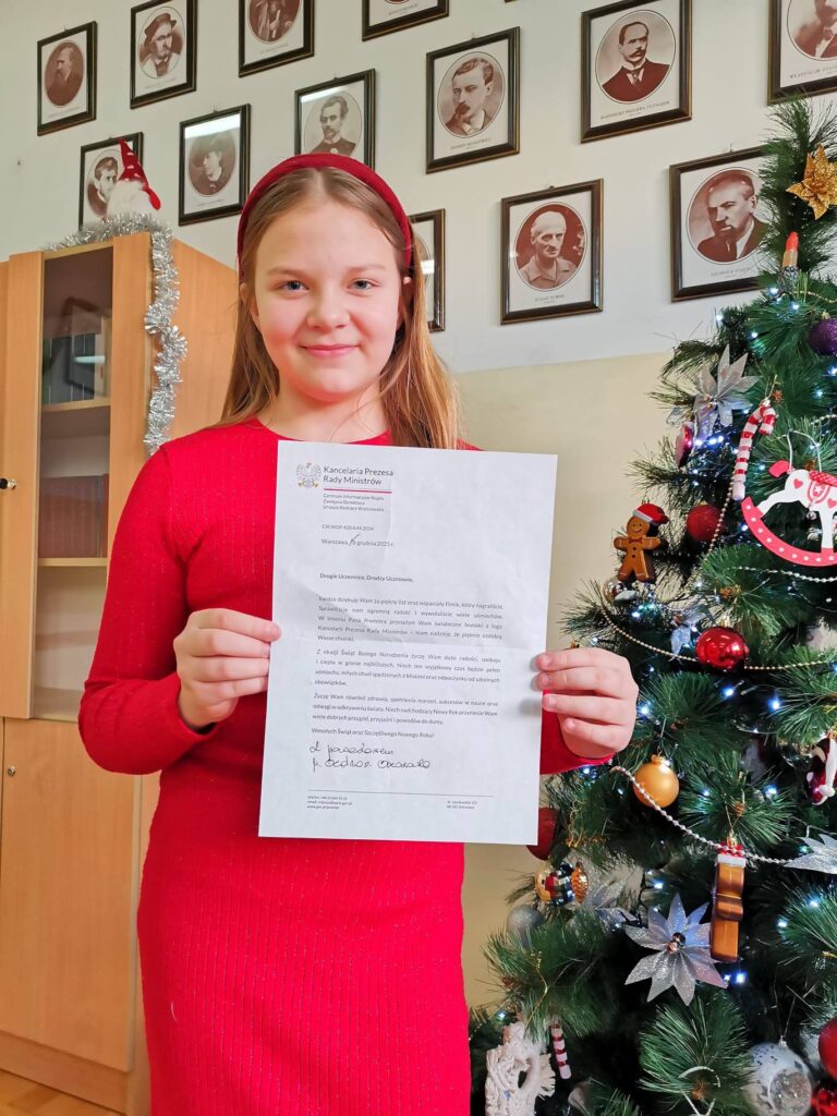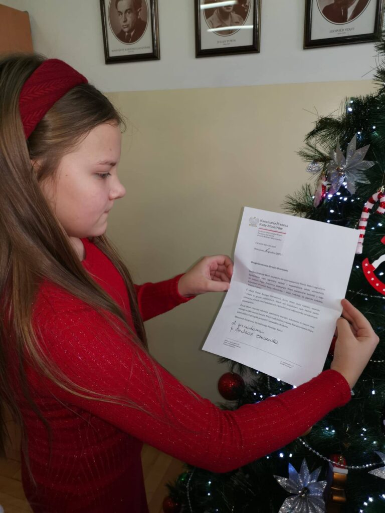 Jako społeczność szkolna chcielibyśmy serdecznie podziękować Kancelarii Prezesa Rady Ministrów za pamięć, ciepłe słowa i piękne bombki. To wyróżnienie jest dla naszych piątoklasistów wspaniałą nagrodą za ich kreatywność i zaangażowanie.