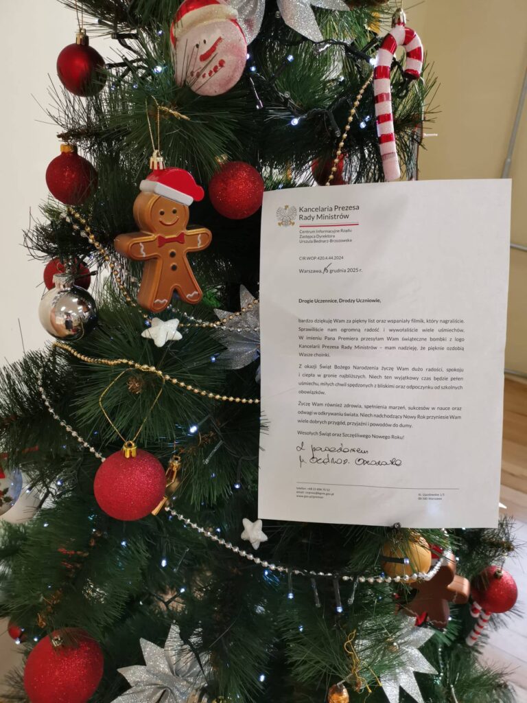 Oprócz prezentów, w liście znalazły się piękne życzenia. Uczniom życzono radosnych i spokojnych Świąt Bożego Narodzenia w gronie najbliższych, odpoczynku od szkolnych obowiązków, a także sukcesów w nauce, odwagi w odkrywaniu świata i wielu powodów do dumy w nadchodzącym Nowym Roku 2026.
