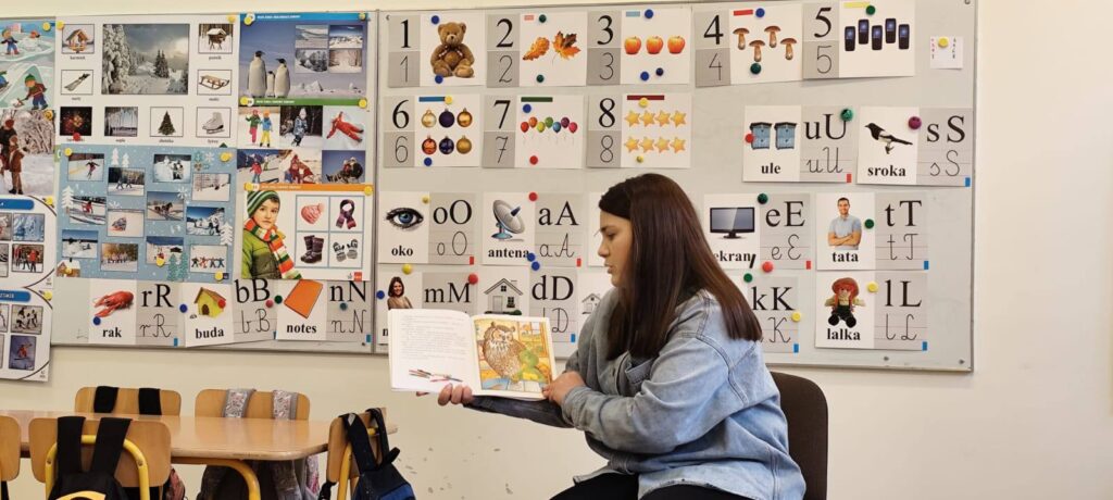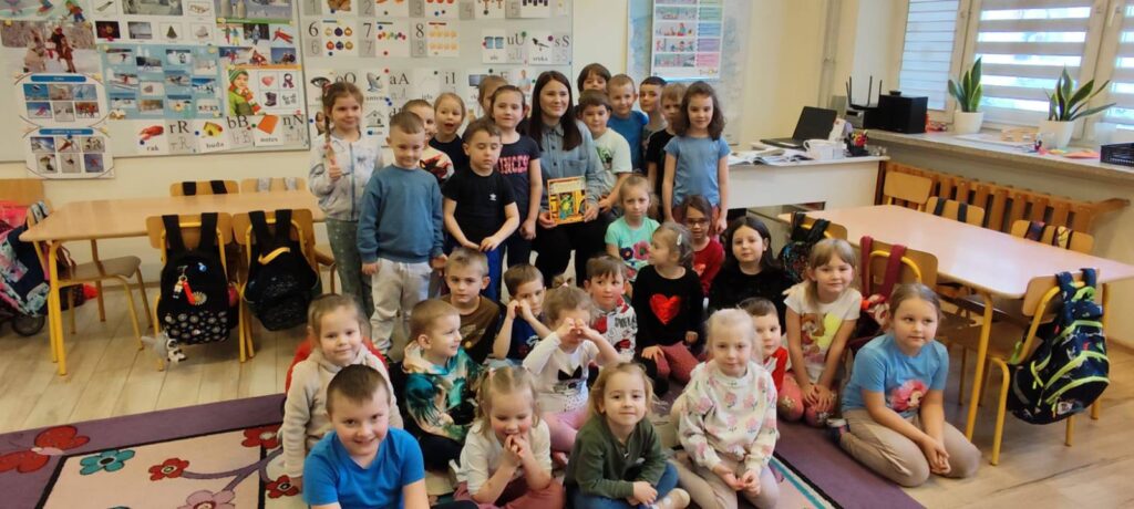W dniu 9 lutego, w ramach trwającej w naszej placówce akcji „Bajkowe spotkanie z mamą i tatą”, grupę przedszkolną odwiedził wyjątkowy gość – mama Tomka z zerówki. Celem tej inicjatywy jest promowanie czytelnictwa wśród najmłodszych oraz angażowanie rodziców w życie szkoły i przedszkola.